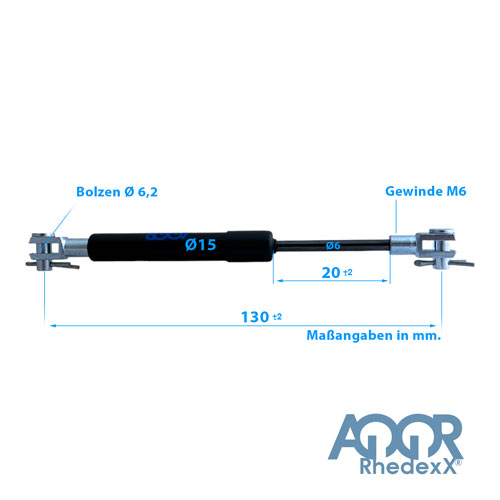 Gasdruckfeder Gabelkopf 130mm/20mm 50N-400N M6 15/6