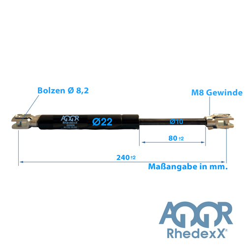 Gasdruckfeder Gabelkopf 240mm/80mm 100N-1.250N M8
