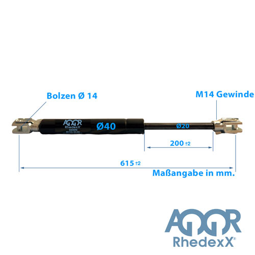 Gasdruckfeder Gasdruckdämpfer Gabelkopf 615mm/200mm 2.400N-5.000N M14