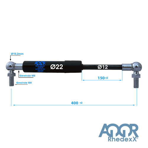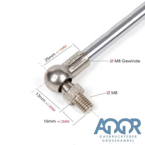 Merkmale Gasdruckfeder Kugelkopf 400mm/150mm Gasdruckdämpfer M8 Gewinde 100N – 1.250N:
