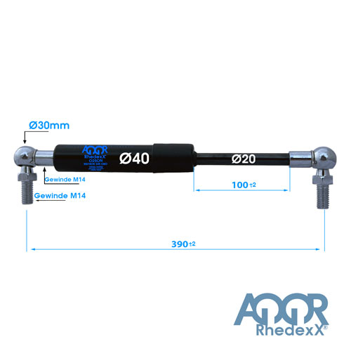 Merkmale Gasdruckfeder Gasdruckdämpfer Kugelkopf 390mm/100mm 2.400N-5.000N M14: