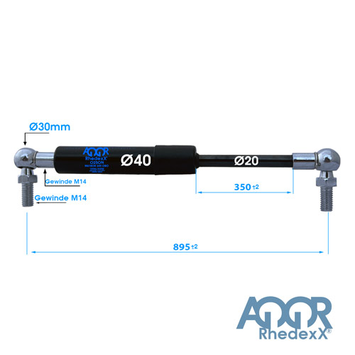 Gasdruckfeder Gasdruckdämpfer Kugelkopf 895mm/350mm 2.400N-5.000N M14