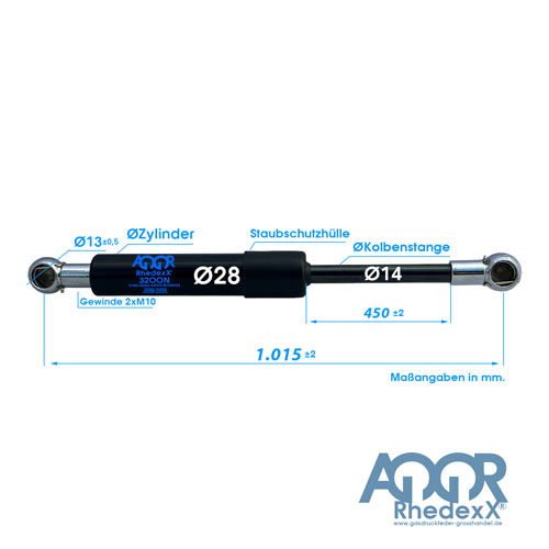 Merkmale Gasdruckfeder Gasdruckdämpfer Kugelpfanne 1.015mm/450mm 1.000N-2.300N M10:
